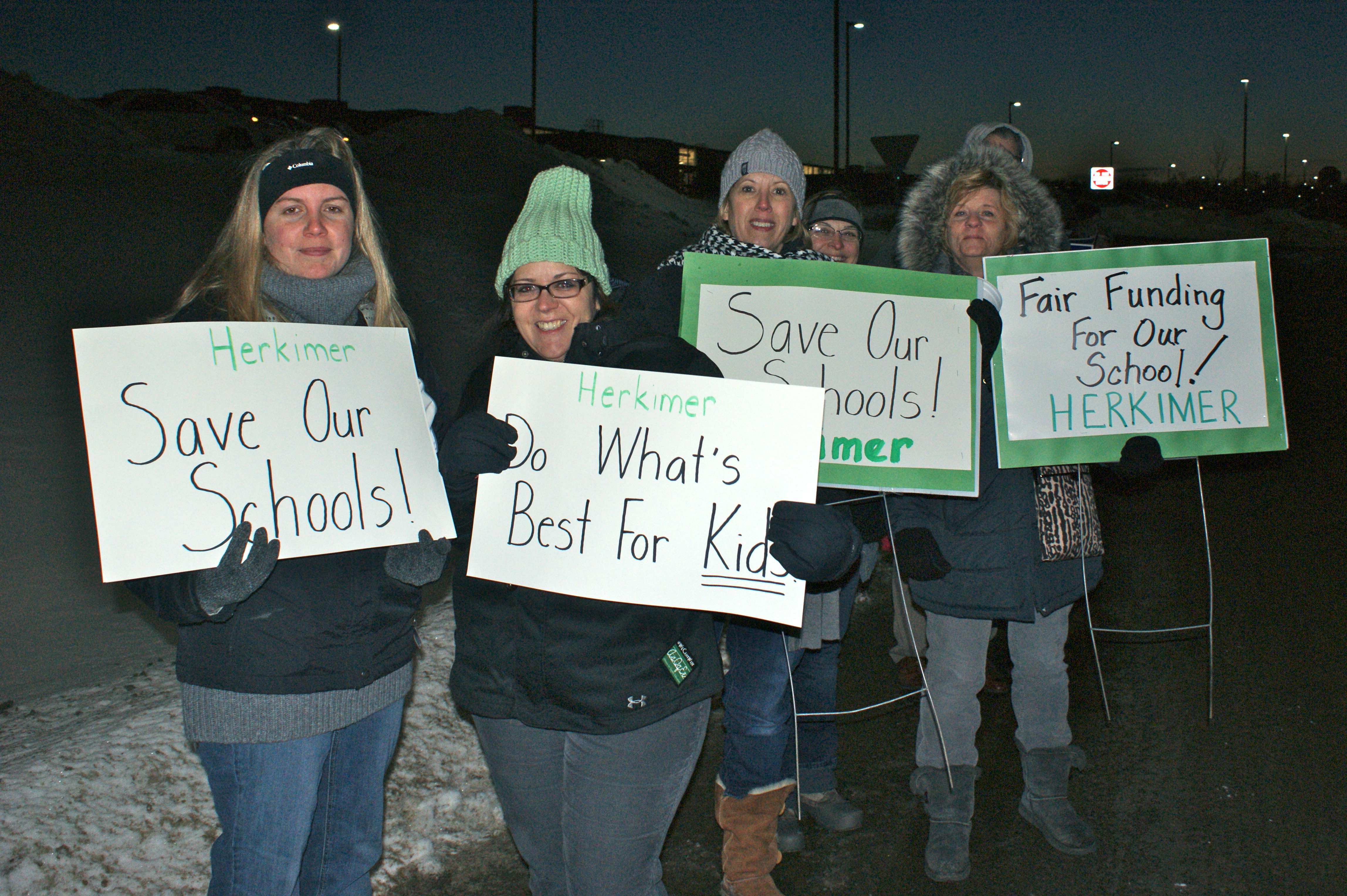 “We’re out here trying to get what every child is entitled to by the United States Constitution,” said Kristin Stallman of Herkimer, as she held a sign bordered with the green of the district’s school colors.