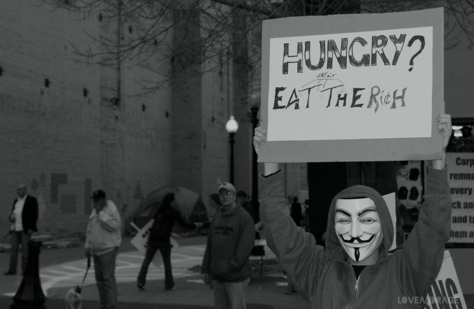 It wouldn’t be surprising that the masses viewed, through the clouds of teargas in Oakland and lines of dark police uniforms against the light concrete of Wall Street, the movement as foolish attempt to forment anticapitalist revolution from MacBook Pros and Androids. Selfies at Zuccotti without a hint of revolutionary guile. The ironic adoption of corporate trademark masks becoming a symbol of resistance to corporations. The views surrounding the movement at times gave the impression that it was being dared to carry out its goals, though not because its detractors believed in it, but rather because many involved seemed to be there only for the novelty; not for any actual change. Thus there was this sublte air of toleration for it all due to notions that the entitled youth would never put their money where their mouths were.
