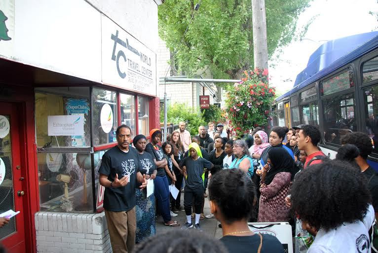 We cross 34th Avenue with the awkward, slow swagger of a large group on a small sidewalk – made all the more awkward by our racial and age composition. Forty years ago, this area was one of the few in the city where black people were allowed to live but today it is dominated by people like me: white folks with large incomes. I can’t help but wonder what the passersby and business owners think of this crew – a group which would have been quite at home in 1965 but in 2015 stands out like a sore thumb.