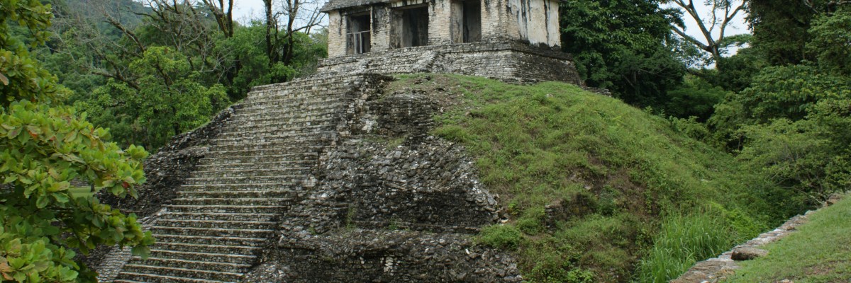 It was finally our turn to get off. We paid our entrance fee, grabbed some maps and started walking down a path surrounded by trees and plants I had only seen in pictures prior to that moment. We could see some light ahead – a clearing in the jungle. We walked to it and out into the open. And there it was. The ancient Maya ruins of Palenque. Towering structures, pyramids, and buildings that were built many centuries ago. Palenque, which is the Spanish name given to what may have been called Lakhama by the Maya, was first settled by humans about 2,100 years ago. The height of power and civilization in Palenque peaked from around 630 CE – 740 CE and the ruins date from 226 CE to 799 CE. It was one of many cities that made up the powerful ancient Maya civilization. How could words describe the beauty before my eyes?