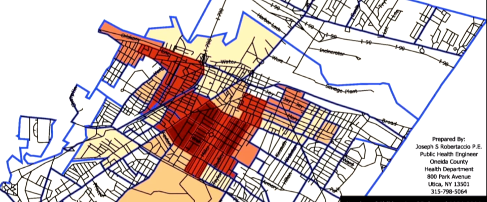 Maps developed by the Oneida County Health Department detail the distribution of lead poisoning throughout the city of Utica. It is here that one is able to see which neighborhoods, namely Cornhill (home to over 40 percent of Utica’s population) and West Utica, are feeling the most profound impact of this major public health issue that spells catastrophe for nearly one hundred children and their families each year in Utica.