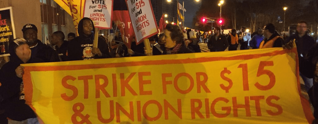 VISUALS: signs, banners, interviews with low wage workers and community leaders