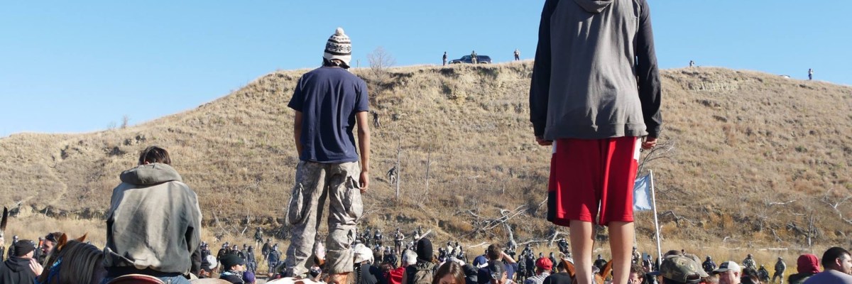 Damn, today was hard. People got hurt, thank creator everyone made it out with their lives. The police, national guard, DAPL (can’t really tell the difference anymore) have set up massive spotlights into our camp that shine all night long, they fly planes and helicopters over us 24hrs a day, even jets with no lights when they feel like it. They are trying to deprive us of sleep, make us lose ourselves and turn on one another. We are living in a war zone. Now I know what my ancestors felt when they were confined to military camps and reservations. But just like our ancestors, still we preserver. Right now I hear roundance songs in the distance, laughter from a hundred different camps as we take care of our wounded and eat dinner. I love this place and the people who have come here to fight for our children’s future. We won’t stand down… And sorry, Obama, another route isn’t going to cut it, we are in this until this black snake and all the rest are dead.