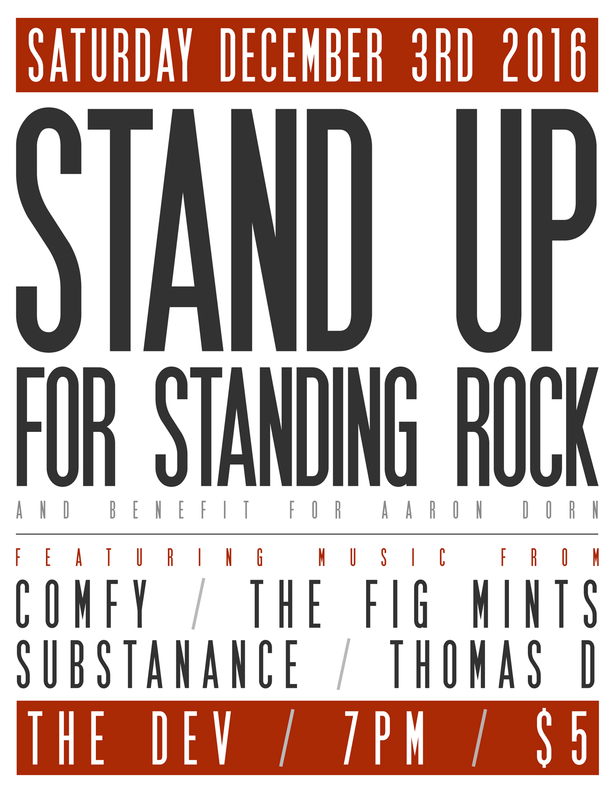 The fundraiser, Stand Up for Standing Rock, will commence at 7 PM on Saturday December 3rd. Musical acts, set to start performing at 8 PM, will also play throughout the night. A cover charge of $5 will be applied for the festivities which will include sets by Comfy, Fig Mints, Substanance and Thomas D.