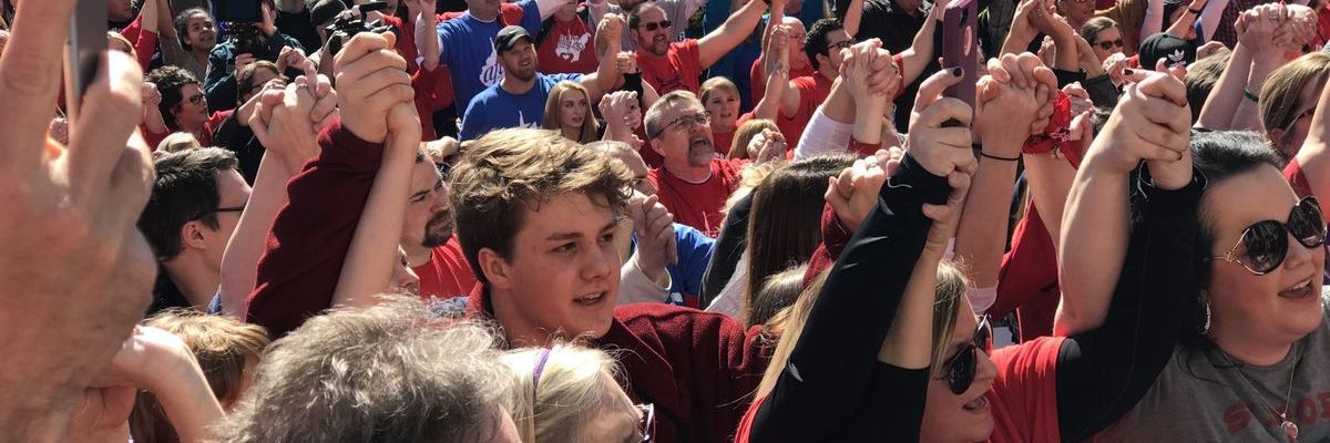 It’s weird because so many people who got involved are not left leaning at all. We got a lot of Trump supporters and a lot of people registered Republican. But the thing that brings them together is they all know that they are getting screwed. This is kept broad and about specific issues that affect all teachers: health insurance and our salary. It’s been interesting to see all these people saying “I’m not sure as a Republican that I am going to vote for these guys come fall.” So many of the teachers are coming to the capitol now and coming face to the face with their representatives who are voting against their pay raises.