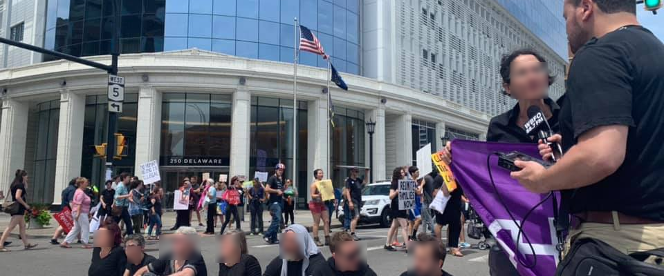 BUFFALO – A large protest convened in downtown Buffalo on Thursday afternoon to deliver a message to Congressional leaders and the Department of Homeland Security (DHS): Close the detention camps on the United States’ southern border immediately. The crowd gathered outside the local office of DHS at the corner of Delaware Avenue and Chippewa Street, and at one point blocked traffic on Delaware Avenue as part of the demonstration. Nine people were arrested by the Buffalo Police.
