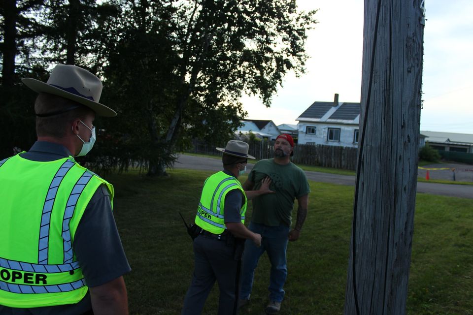NYSP Troopers finally intervened, but only after Trump supporter Jason Winter attacked BLM activists. They let him go, saying the worst that could happen to him from physically attacking activists and throwing a rock at them was a $24 fine. (Photo credit: Eamon Handzel)