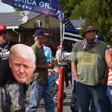 Published August 29, 2020 at 6000 × 4000 in Gallery: Back the Blue Rally in Schuyler Descends into Violence A Trump supporter holds a large decapitated head of the president. (Photo Credit: Love and Rage) ‹ Return to post Leave a comment Cancel reply Δ