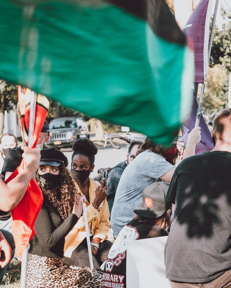 Activists and Jessie’s friends who had gathered that day looked on in respectful silence, many finding it difficult to hold back tears. Various Black Lives Matter, Haudenosaunee, and radical flags fluttered in the wind as police cars slowly drove by the park. A traditional Mohawk lacrosse stick was seen weighting down a pile of protest signs.