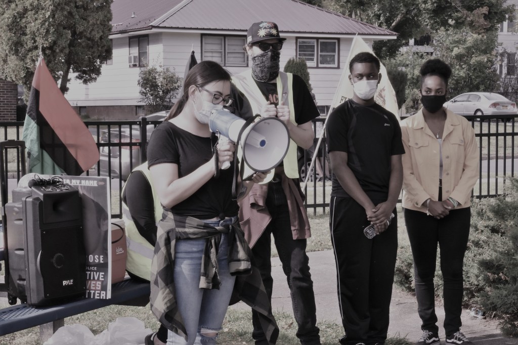 Attention soon turned to the far side of the playground to Utica Abolitionist Hana Selimovic who welcomed everyone to the rally and delivered the first speech. Four years ago Selimovic was harassed by the UPD because of her activism in support of the Black Lives Matter movement. Years later, undeterred by this intimidation for her political activism, she is still involved.